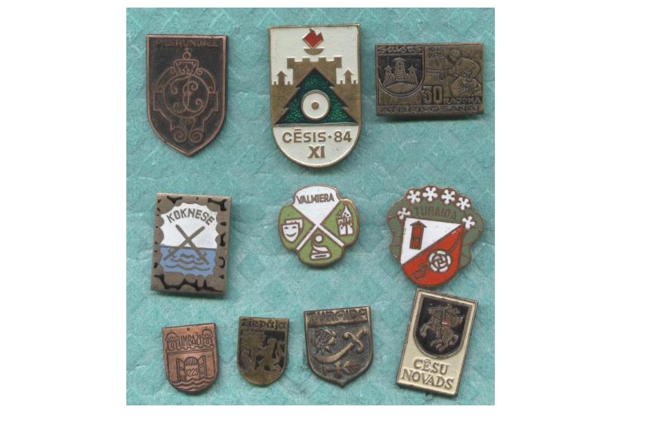 Решил разместить изо (выше были показаны некоторые из этой серии) и кое-какие в сравнении с разовыми.В моем списке гербов "Советской Латвиии 70-х г." (ГОРЯЧАЯ ЭМАЛЬ) - 30 шт., плюс сюда же я отношу знаки Саулкрасти и Стайцеле (1992г.), ИТОГО: 32 шт.