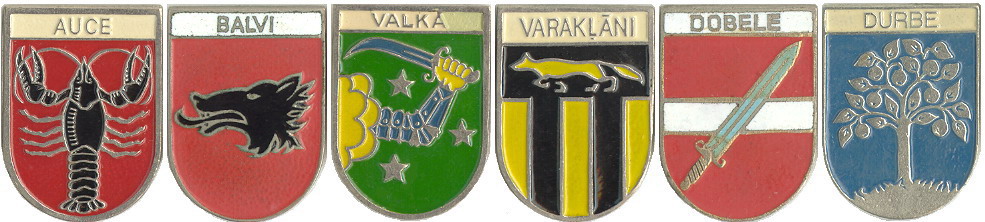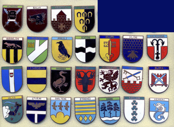 серия значков гербов Латвии советского периода (т/м, гор. эмаль) состоит из 30 шт.: