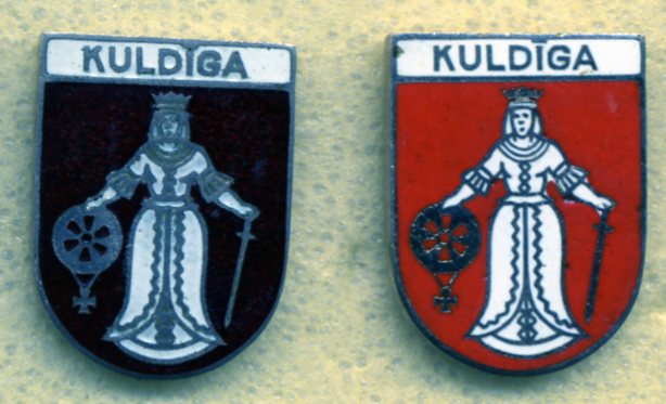 А есть у кого нибудь информация про советский период?, был ли проект или хотя бы сувенирный (гербоид) в СССР?mvl писал(а) :"Придираюсь" к названию топика: это не СССР и не город. На значке герб Кулдигского района, утвержденный в 1938г. для уезда (aprinkis) и восстановленный в пост-советское время.gleser писал(а) :Ку́лдига (Kuldīga) — город и районный центр на западе Латвии, около 13 тысяч жителей. Первое упоминание в 1242, город с 1378. Старые названия (немецкие) — Jesusburg, Goldingen. Расположен на берегу реки Венты, у впадения в нее речки Алекшупите
