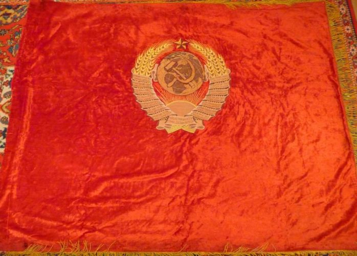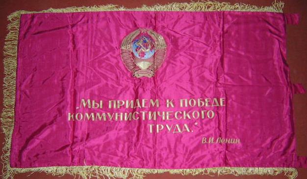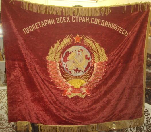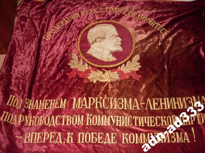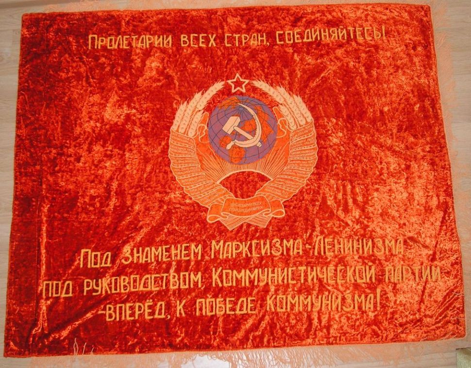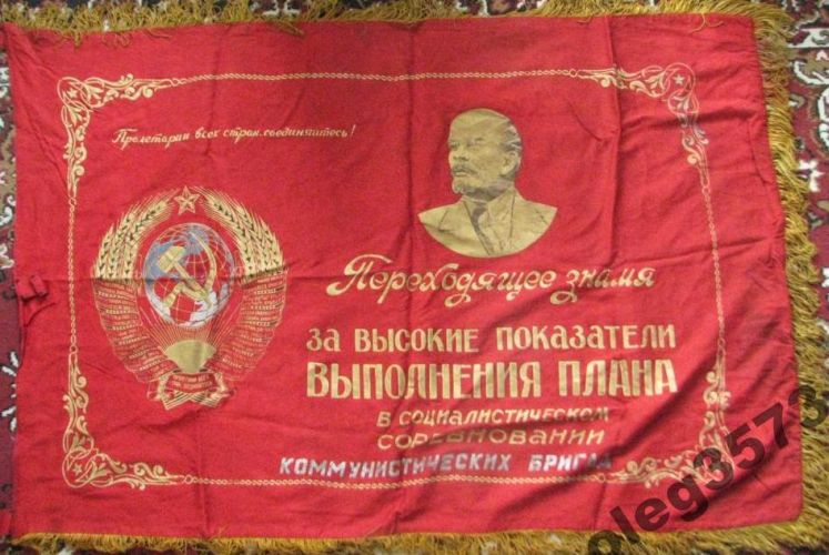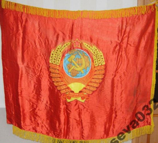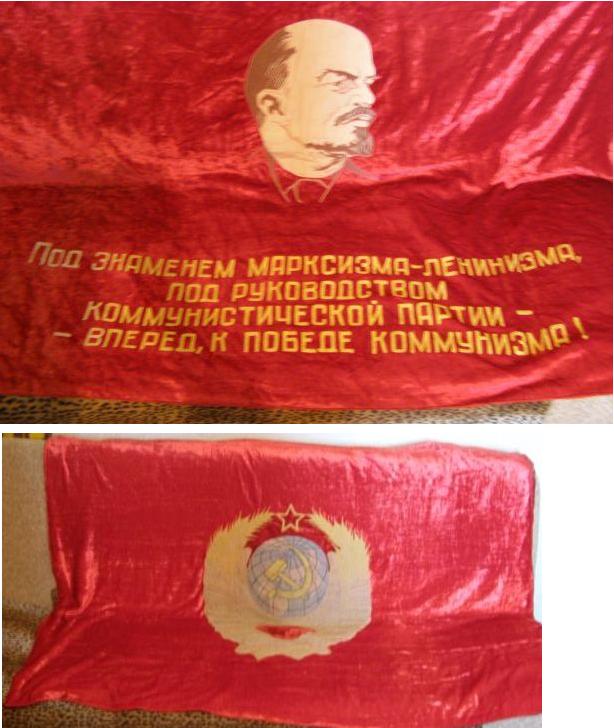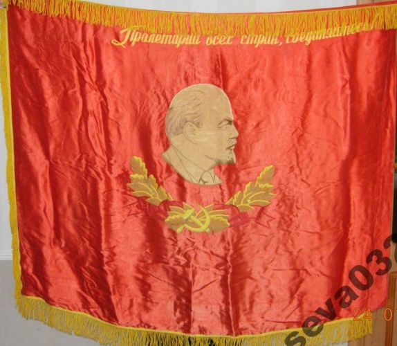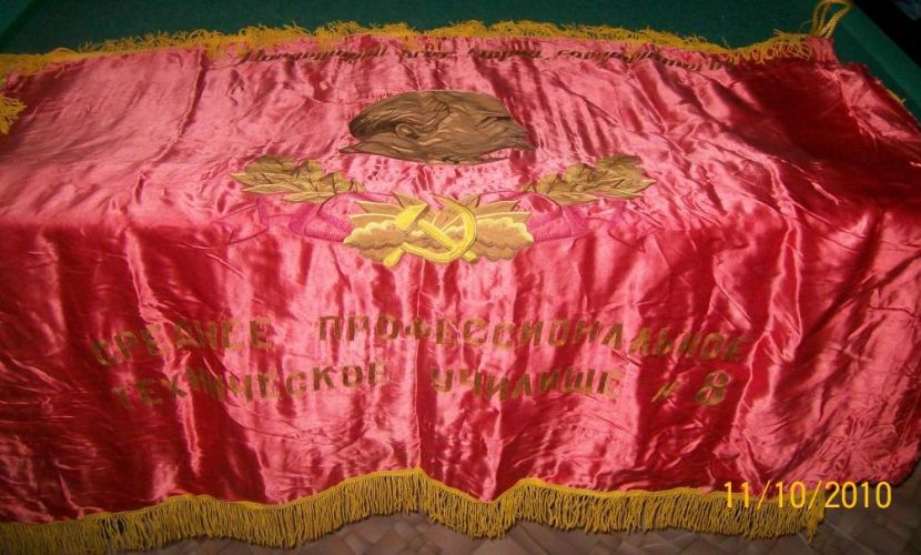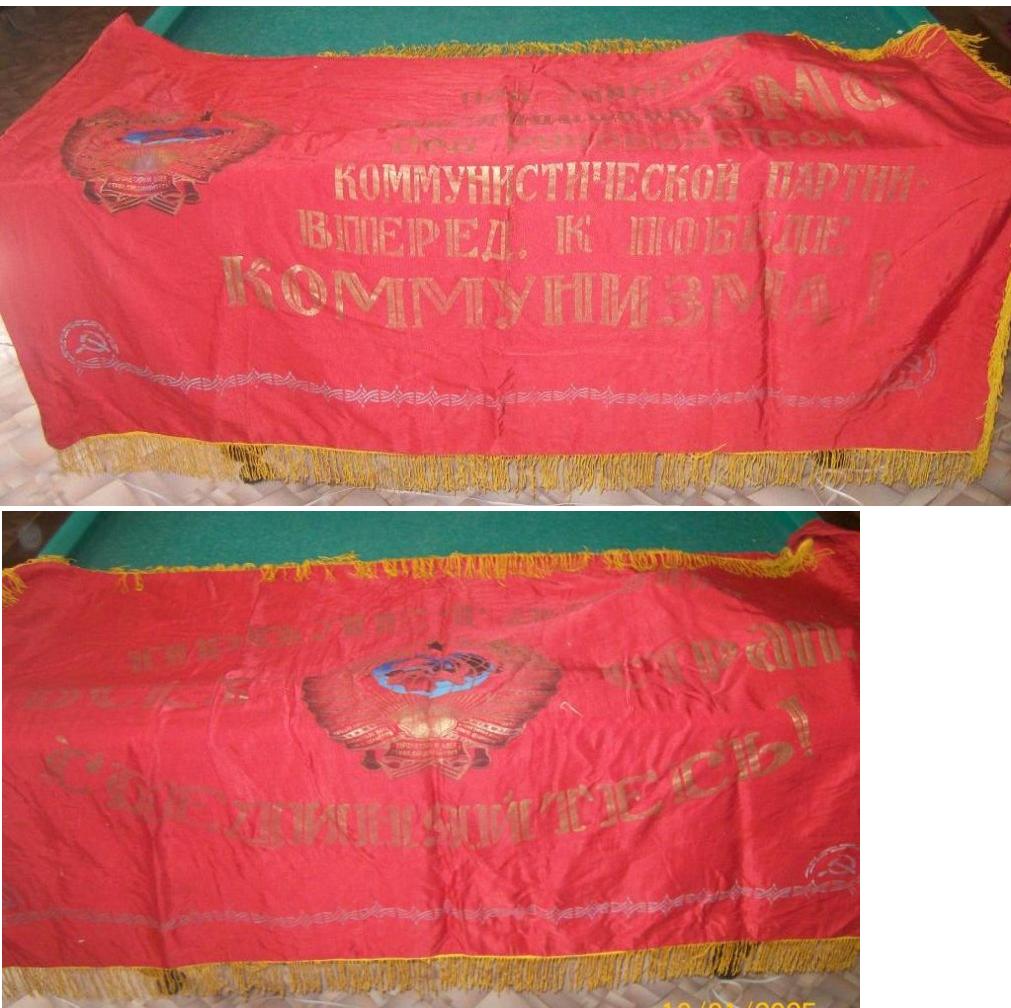 Сфоткайте с обеих сторон и, указав стоимость, дефекты и историю товара, разместите фотки в соответствующем разделе соответствующего сайта. В продаже сейчас огромное количество знамен подобного вида (знамя/переходящее знамя предприятия).