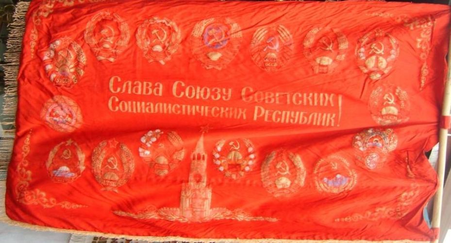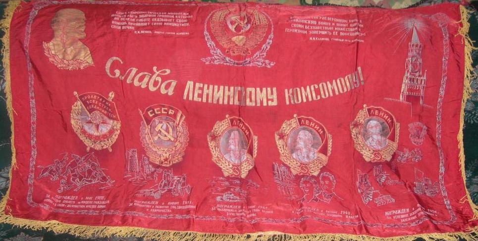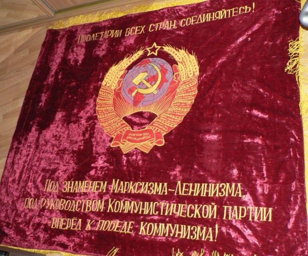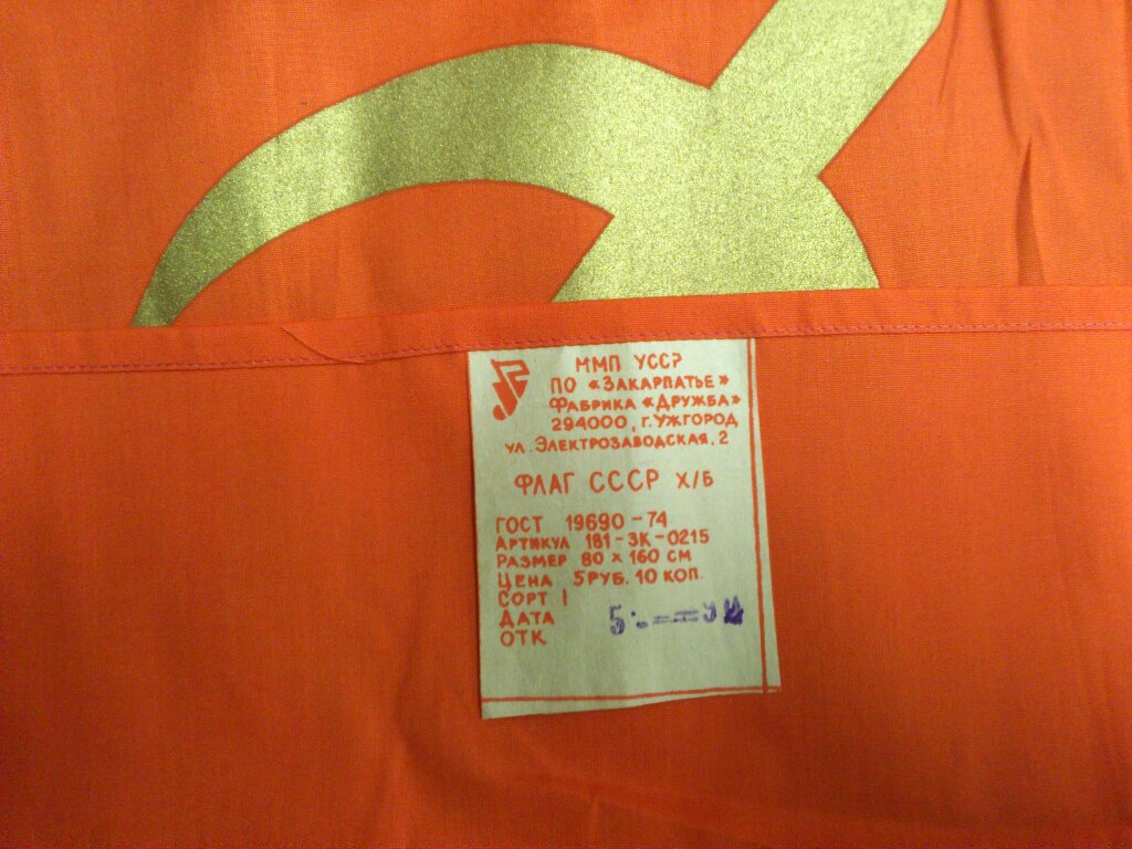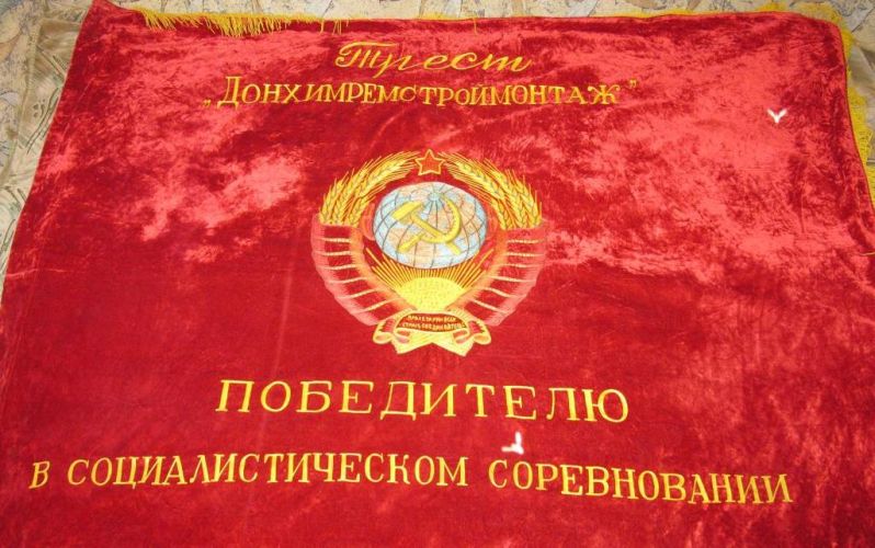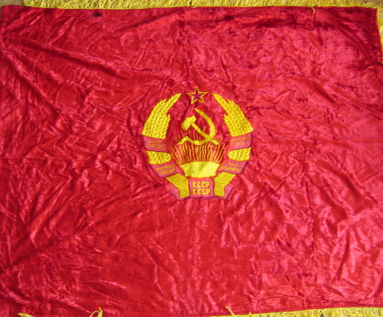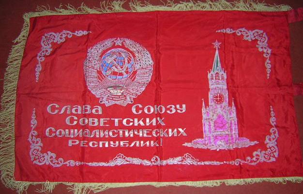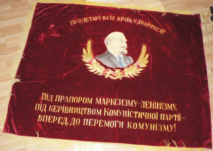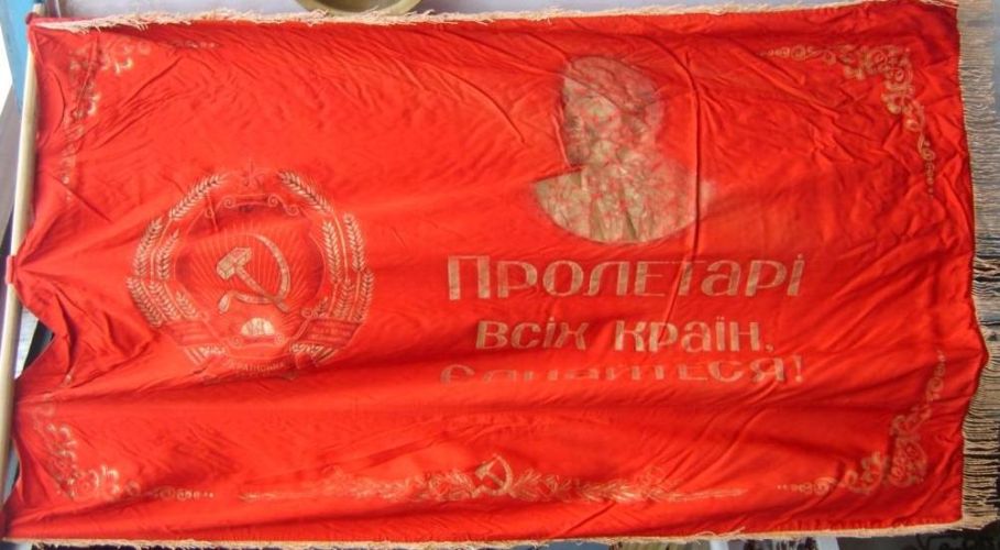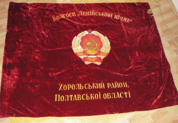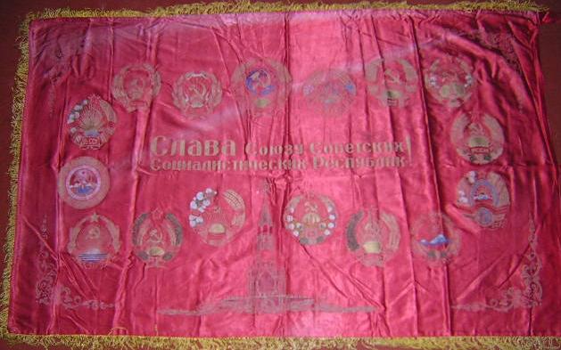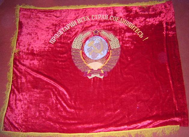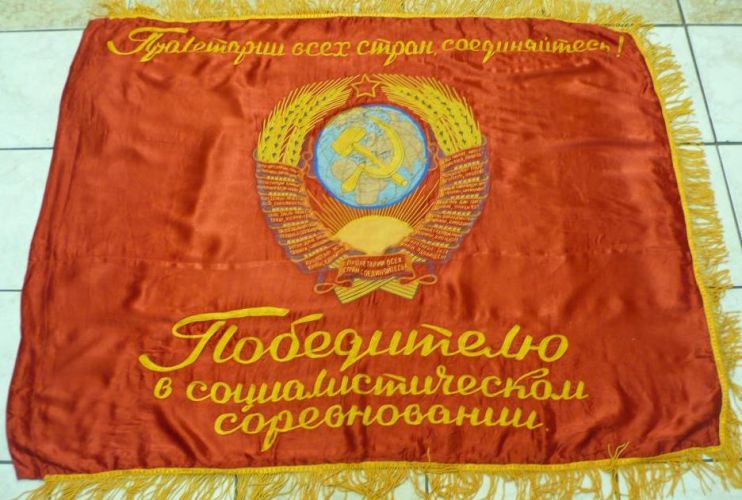 Сфоткайте с обеих сторон и, указав стоимость, дефекты и историю товара, разместите фотки в соответствующем разделе соответствующего сайта. В продаже сейчас огромное количество знамен подобного вида (знамя/переходящее знамя предприятия).
