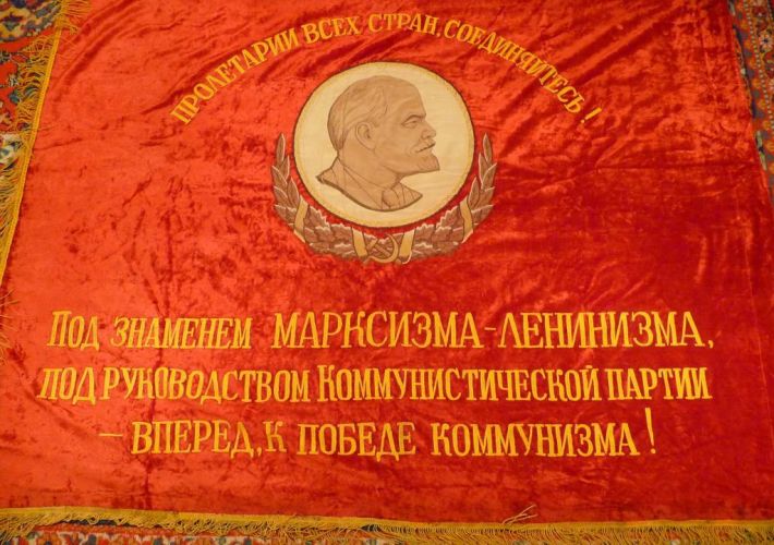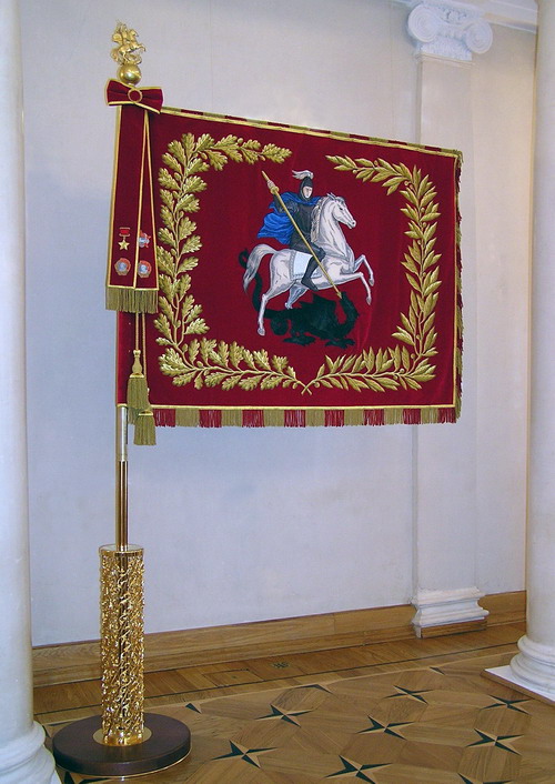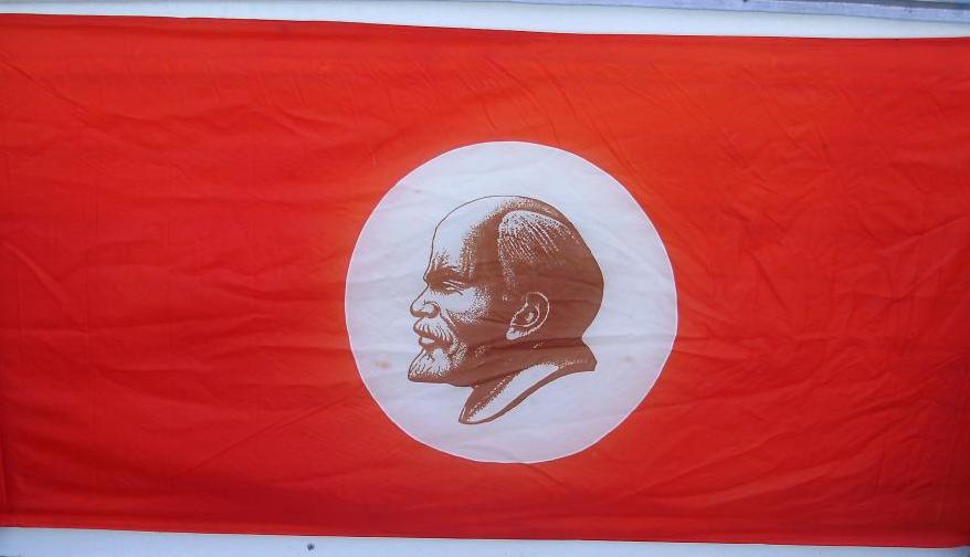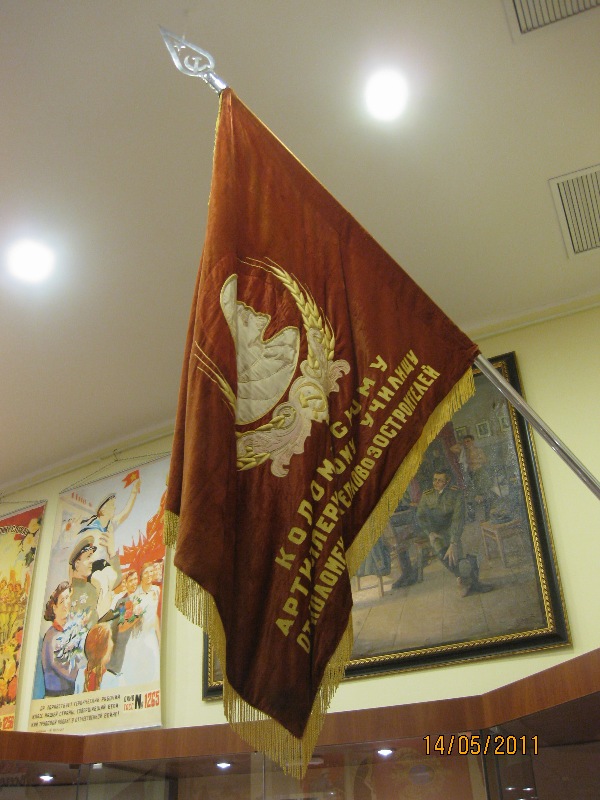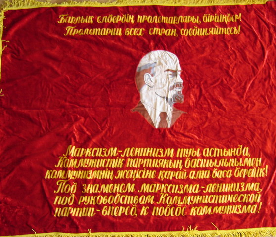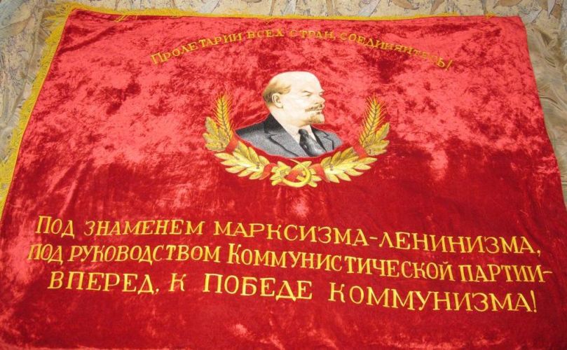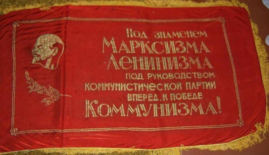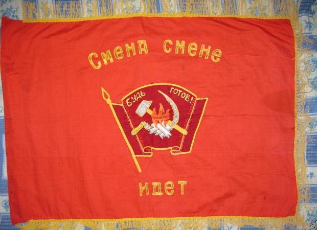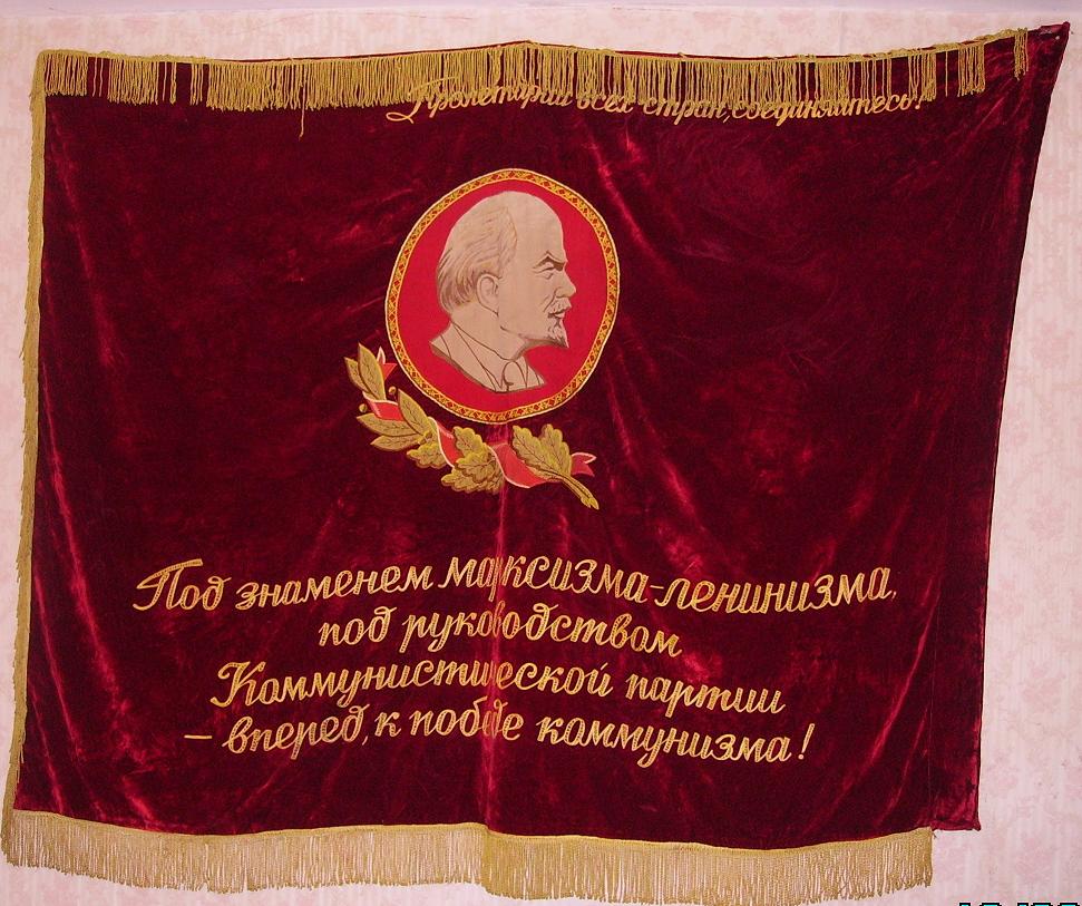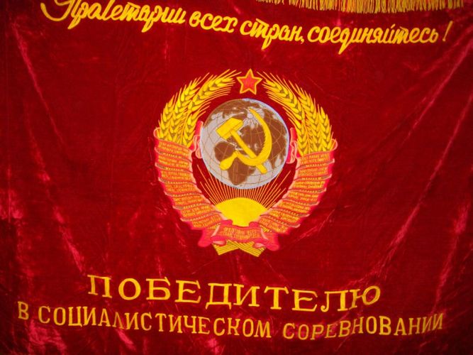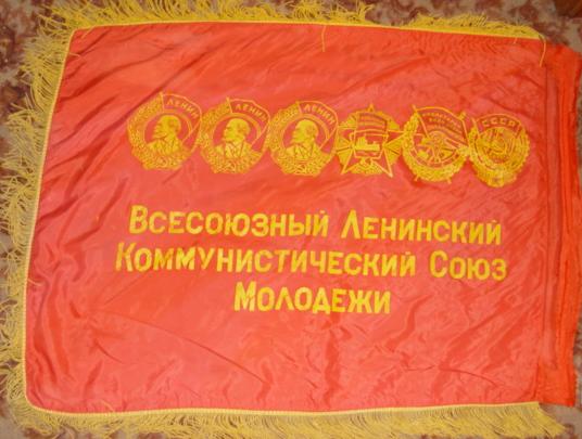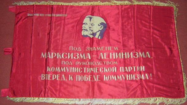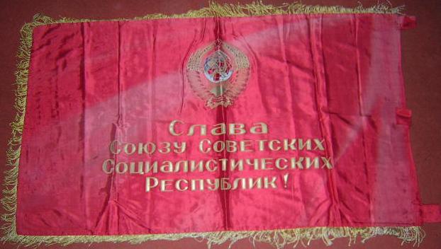 Сфоткайте с обеих сторон и, указав стоимость, дефекты и историю товара, разместите фотки в соответствующем разделе соответствующего сайта. В продаже сейчас огромное количество знамен подобного вида (знамя/переходящее знамя предприятия).