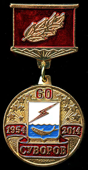 Знак «60 ЛЕТ ГОРОДУ СУВОРОВ. 1954-2014» (с гербом 2014 г.)