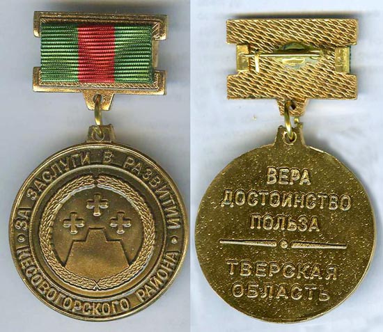 Знак «ЗА ЗАСЛУГИ В РАЗВИТИИ КЕСОВОГОРСКОГО РАЙОНА» (с фигурами герба2001 г.)