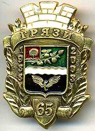 О знаке "ГРЯЗИ - 65 лет ГОРОДУ" (в серии "Юбилеи городов - 2003"). Автор проекта герба - Роман Пасынков (Липецк)