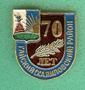 Скорее всего после основания в Халиловском районе в 1959 году г. Гай и одноименного ГОКа, решили сделать новый промышленный город районным центром. Во всяком случае в ссылках есть Указ ВС РСФСР от 03.11.1960 г. о перенесении районного центра Халилово в г. Гай и переименовании Халиловского района в Гайский район. Вот и получается что району 70 лет, а его райцентру нет и пятидесяти.Aleksandr писал(а) :С этим значком надо разбираться - на нём написано: