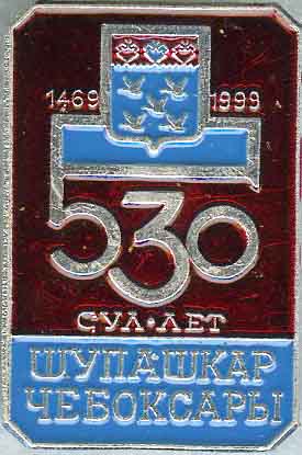 На значке герб города изображен не совсем правильно, отсутствует вольная часть с изображением герба Чувашии