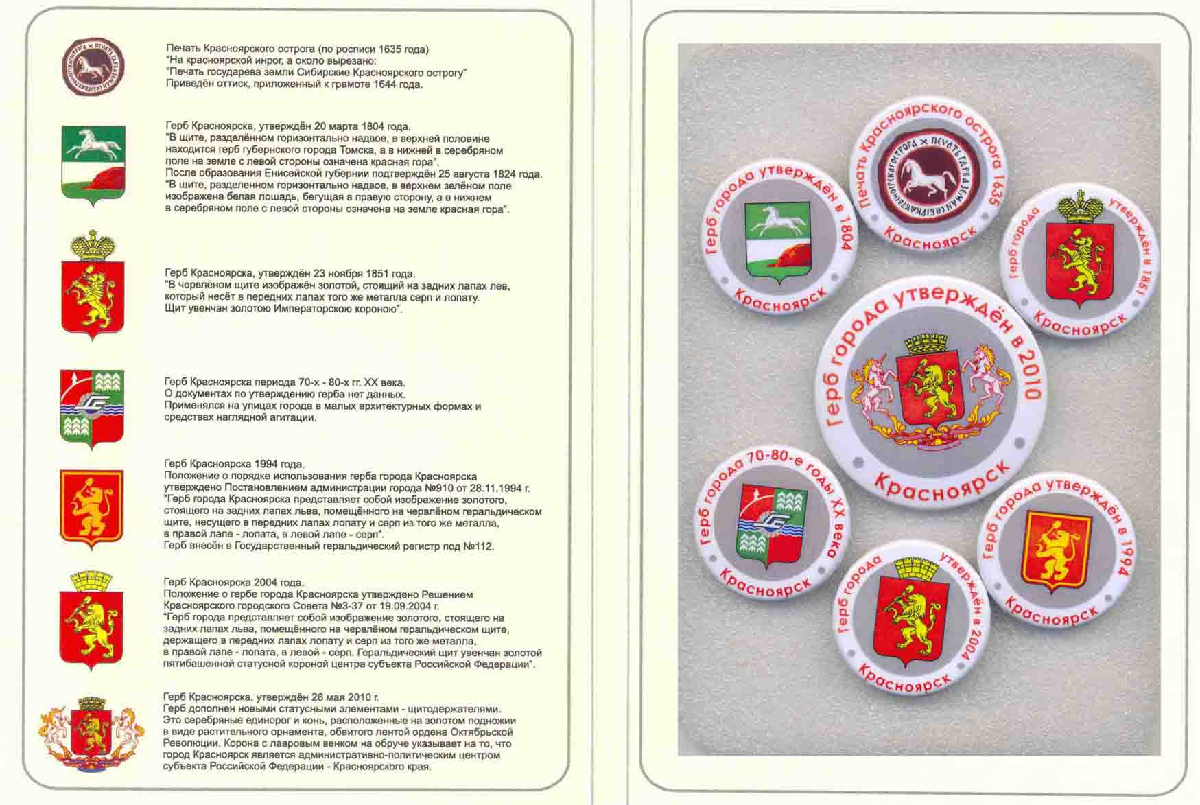 Серия сувенирных значков КРАСНОЯРСК Герб. От основания города до наших дней.