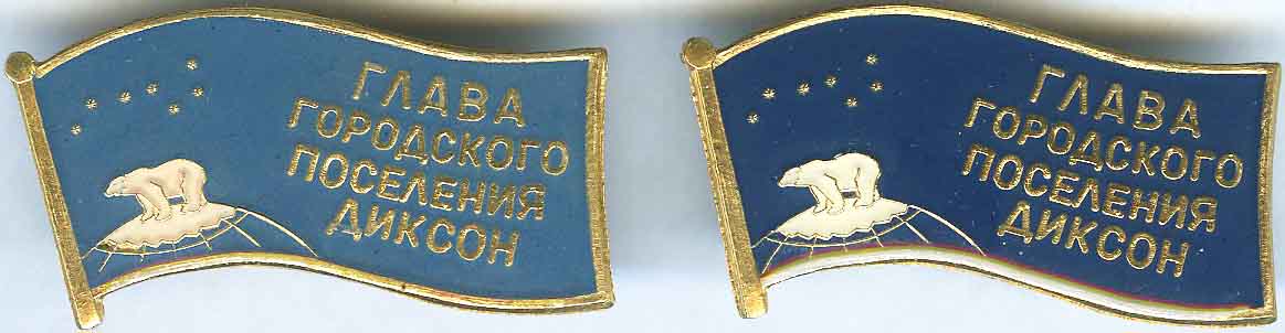 Знак «ГЛАВА ГОРОДСКОГО ПОСЕЛЕНИЯ ДИКСОН» (с фигурами герба Диксонского р-на 2003 г. - ныне городское поселение Диксон Таймырского (Долгано-Ненецкого) района Красноярского края).