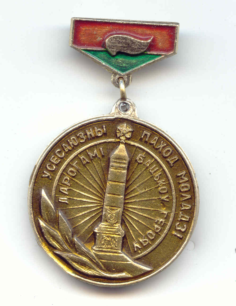 Предположу, что это один из молодёжных патриотических ведомственных знаков Белоруссии. На Белоруссию указывает изображение известного монумента в Минске. Как версия ведомственной принадлежности: БУГА - Белорусское управление гражданской авиации. :roll:
