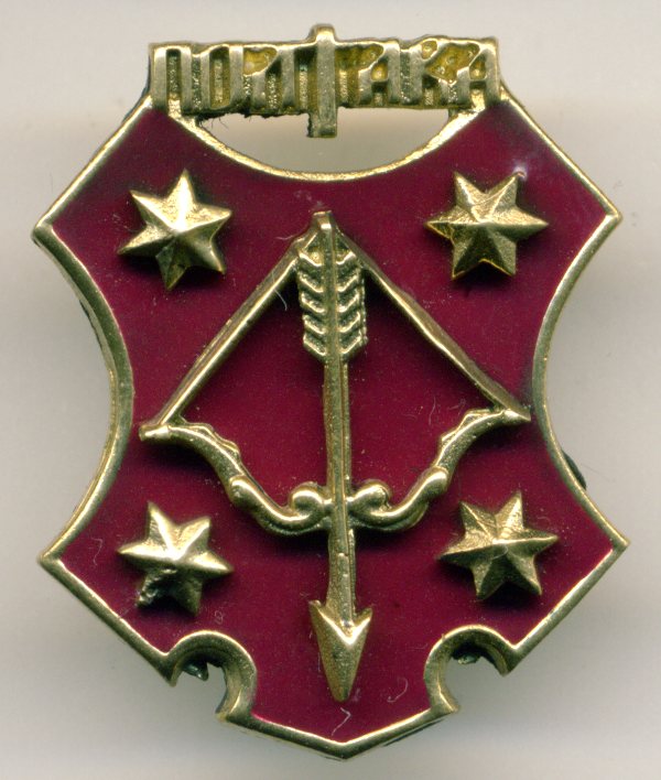 Гербы населённых пунктов на значках.