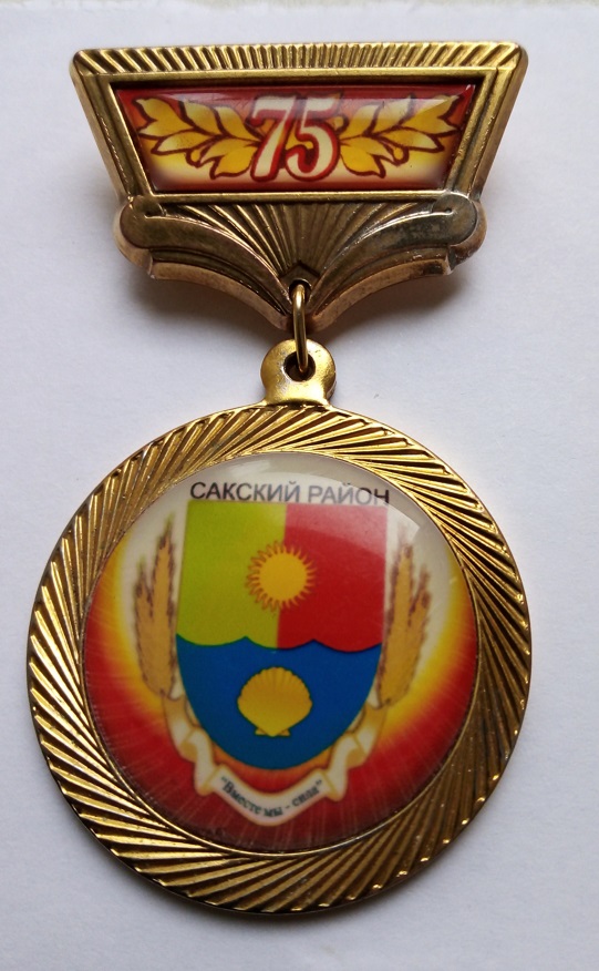 75 лет Сакскому району. 2010 год. Латунь. Вставка и накладка на колодке - смола.