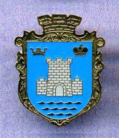 На значке два герба: проект, предложенный князем Потёмкиным и постсоветский вариант.