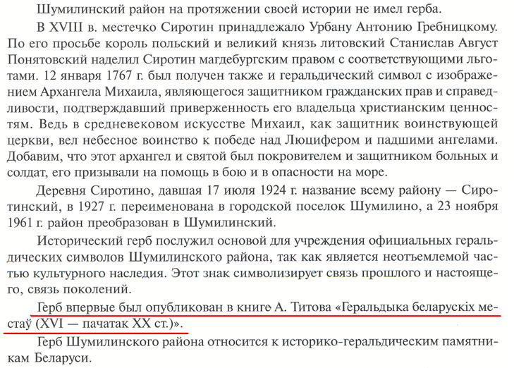 И в этом же Геральдикуме есть статья про Шумилинский район:
