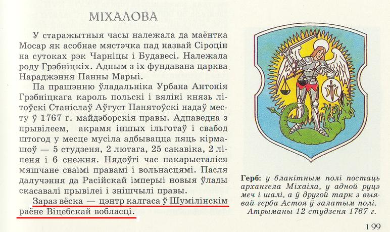 А в первой ссылке написано, что в наст. время дер. Михайлово является центром колхоза в Шумилинском районе. А остальная информация практически повторяет информацию со второй ссылки.