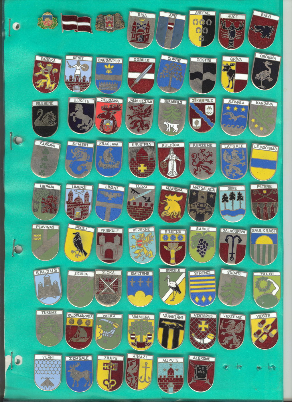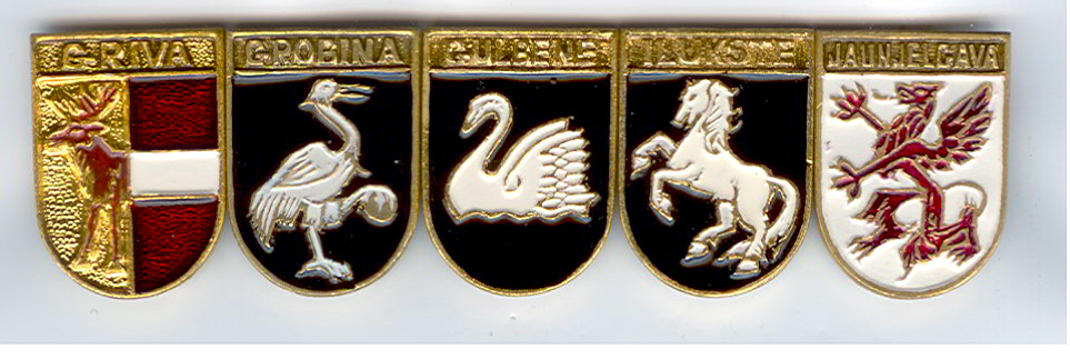 Для начала значки КЭМЗ. Все знаки относятся к земельным гербам буржуазной Латвии (слева направо):