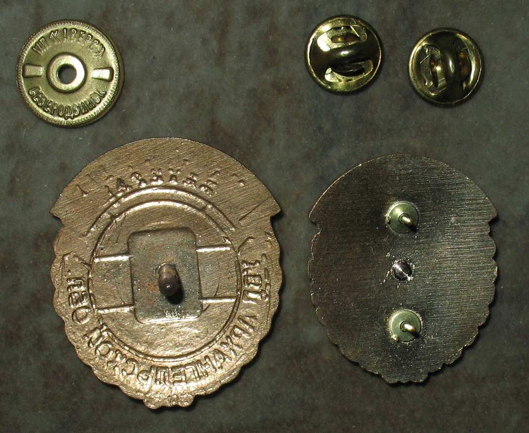 Тяжелый металл, горячая эмаль, накладка. Оба знака производства г. Северодвинск.