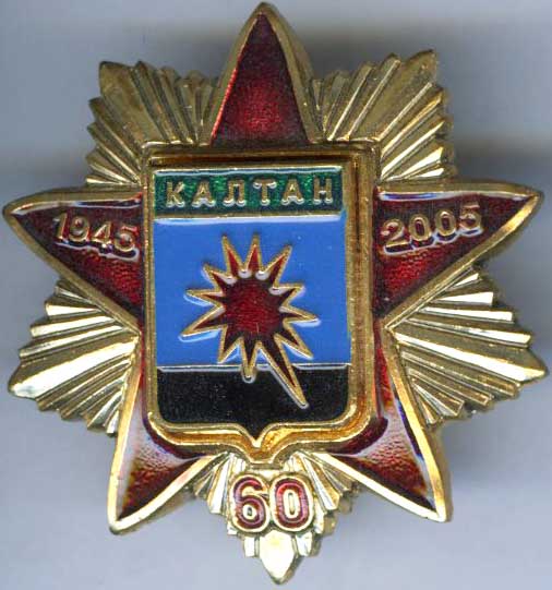 Знак «ПОБЕДА – 60 лет» (с гербом города Калтан 2001 г.)
