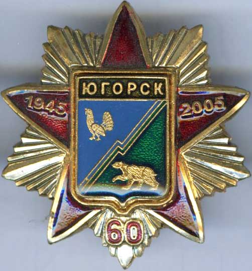 Знак «ПОБЕДА – 60 лет» (с гербом города Югорск 2004 г.)