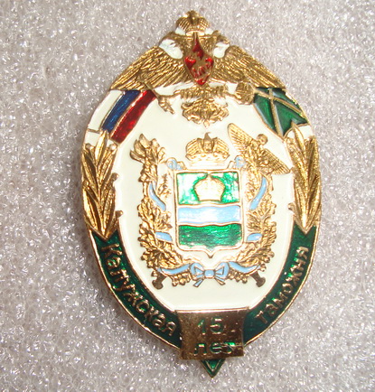 Размер 35 х 45 мм. Материал - томпак; Крепление - 2 цанги; Без клейма. Тираж - 350 экз. Выпуск 2002г. Эскиз заказчика