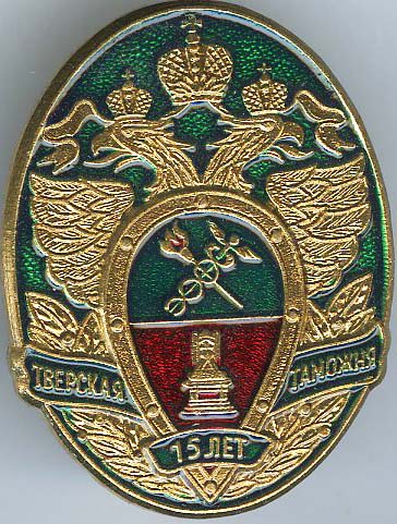 Знак "ТВЕРСКАЯ ТАМОЖНЯ - 15 лет" (с гербом Тверской области)