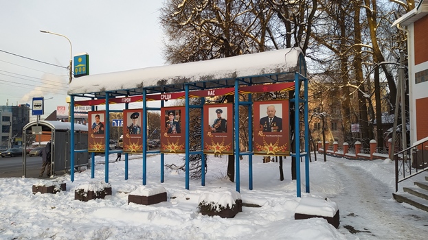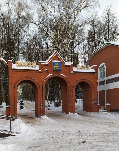 Был здесь представлен фрагмент арки с гербом Канска, вернее только герб.