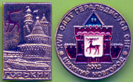 Верхняя подборка посвящена Нижегородскому кремлю (не берусь утверждать что все ? плохо видно :( ) ? одному из символов города, неразрывно следующим в значках за гербом, вне зависимости от времени. Подробнее о истории на http://admgor.nnov.ru/references/history/historynn.html