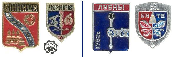 Гербы населённых пунктов на значках.