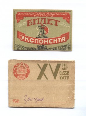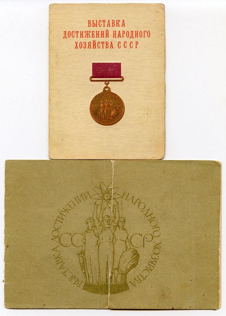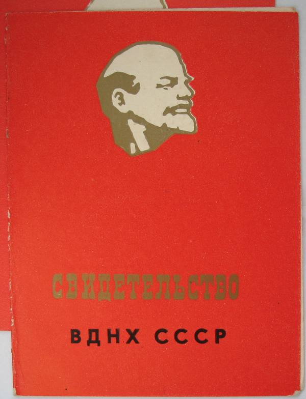 Если, точно употреблять термины, то это не удостоверение , а свидетельство участника выставки. Удостоверение вручалось с медалью: "Победителю соц. сор.", "За успехи..."
