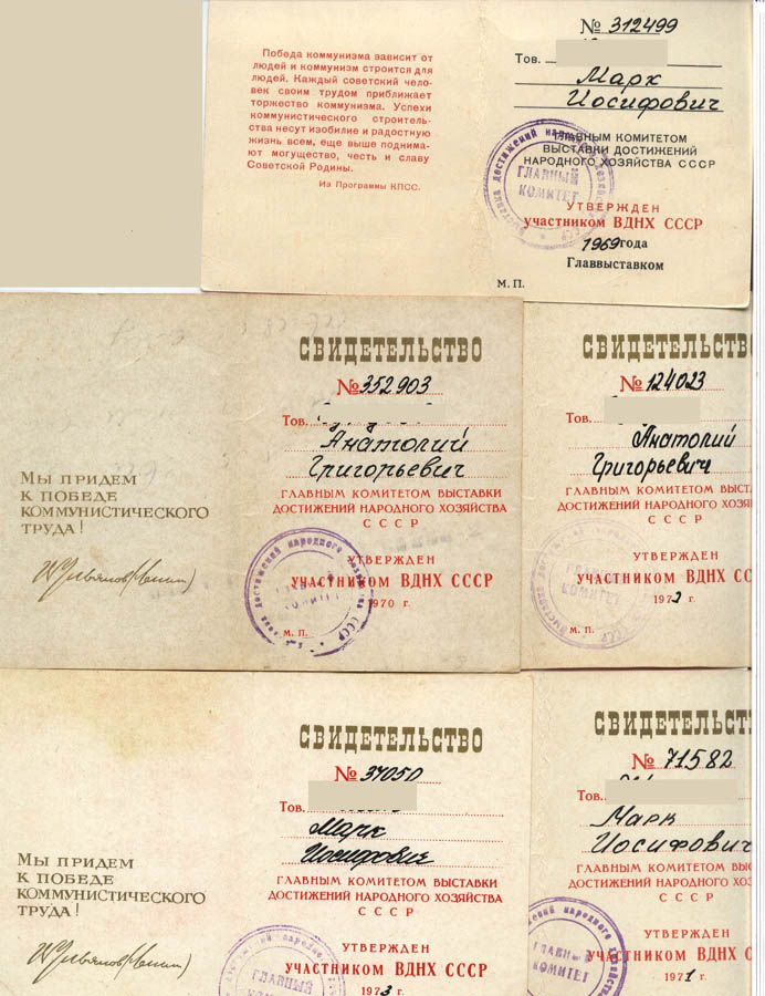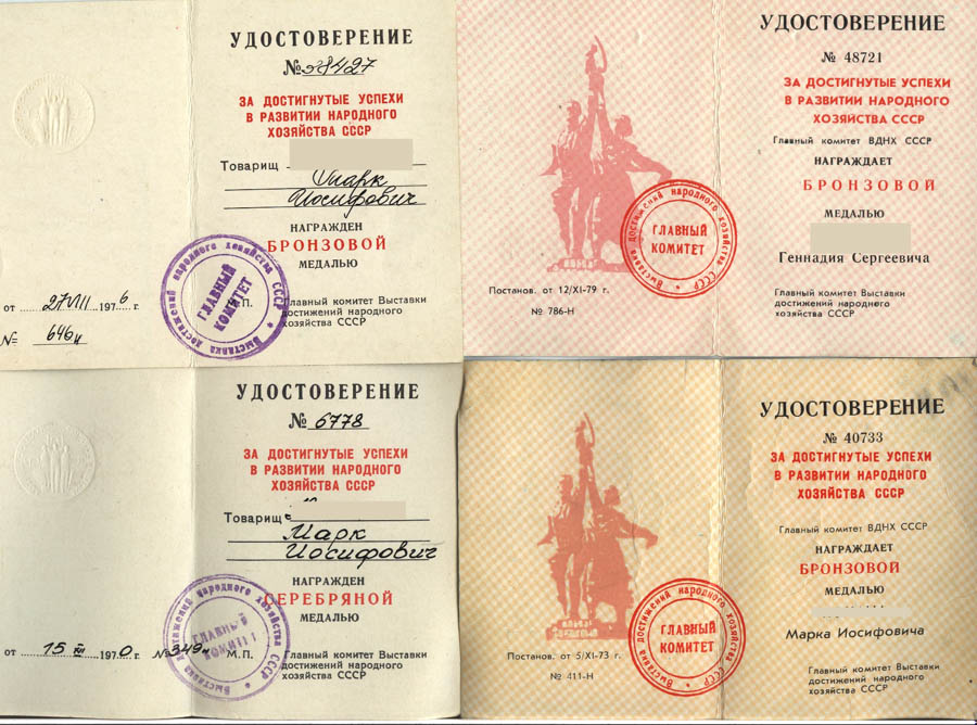 Предлагаю систематизировать по вариантам и разновидностям медали ВСХВ-ВДНХ и документы к ним...