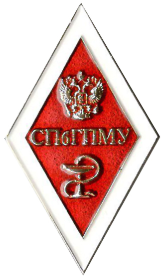 Соответственно, по выпуску докторам в этом году выдавали ромбики точно такие же по дизайну, как я показывал чуть выше, но с надписью СПбГПМУ.