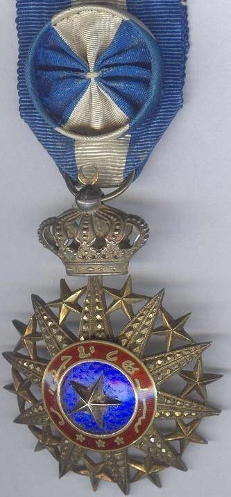 Односторонний десятилучевые серебряные звезды с изображением алмазов, с позолоченными или золотыми пятиконечными звездами между лучами. Центр звезды с ярко-синей эмалью и рельефной серебряной пятиконечной звездой окружен легендой с позолоченными арабскими буквами на основе красной эмали. Звезда была подвешена на серебряной королевской короне с маленьким позолоченным полумесяцем.