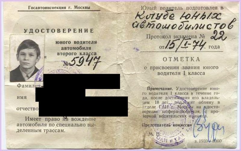 Удостоверение более раннего периода (1974 г.), когда еще для юных водителей существовала классность.mamont писал(а) :Юный водитель