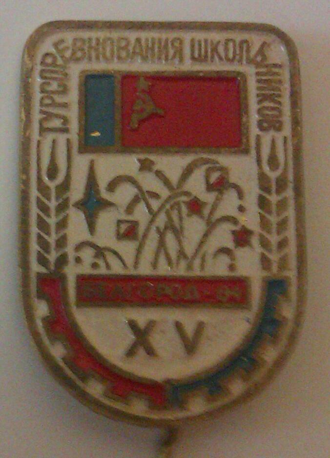 "За пять однодневных походов" - знак из серии Турбазы МО СССР "Терскол" в Приэльбрусьеагроном писал(а) :Первая награда юного туриста!