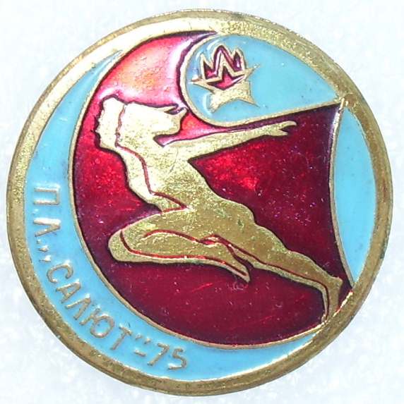 Первоначально был значком п/л "Салют" (знак 1975 года) Ленинградского завода "Звезда".