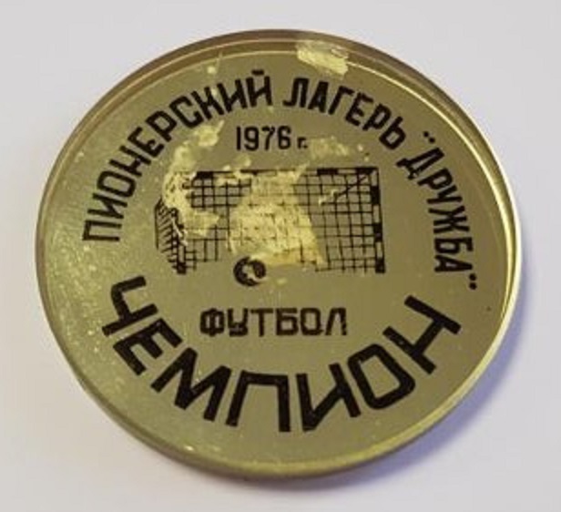 Значок взят из фото группы лагеря в соцсети, вручался в 1980 г. Лагерь основан, по разным источникам, в 1949 или 1950 г.