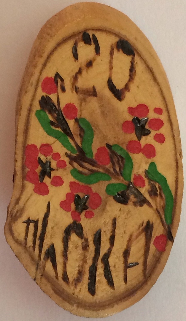 самопальный вкладыш в знак-пуговицу (опубликован бывшим пионером) и современный знак по этому вкладышу, выпущенный, возможно, к встрече пионеров этого лагеря
