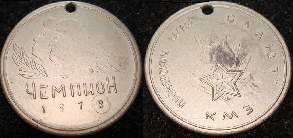 Композиция "звезда-пламя" с фотографии "один в один" на одном из значков. На остальных сочетание тоже есть, хотя расположение элементов и другое, так что предположительно добавил сюда. Все знаки выпущены на московских заводах. Верхний знак самый старый, думаю, выпущен к 20-летию лагеря.
