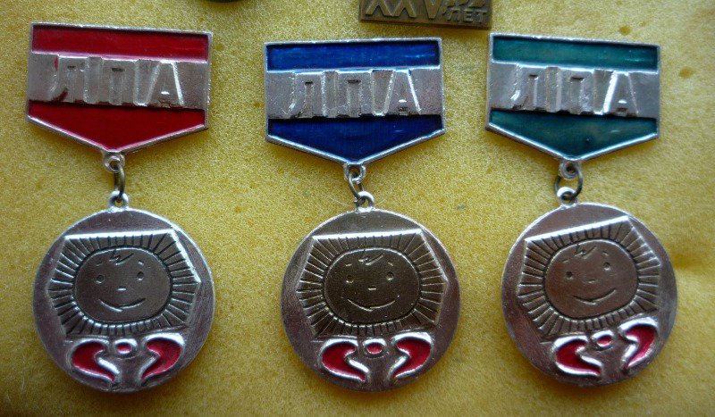Фото с тремя медалями - это набор за 1,2,3 место, размещенный бывшими пионерами в группе, посвященной лагерю.