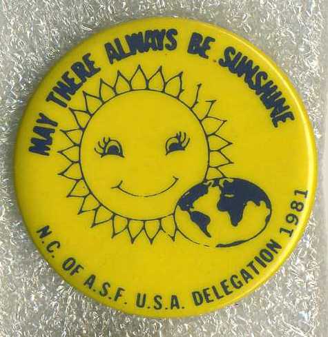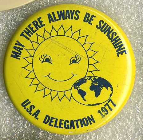 Американцы, не думая долго и много, повторили символику и девиз Международного детского фестиваля 1977 года в Артеке на делегатском значке к какому-то мероприятию в 1981 году.