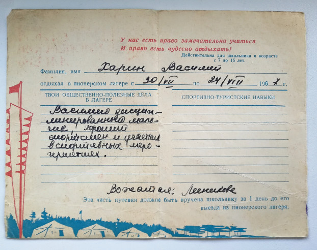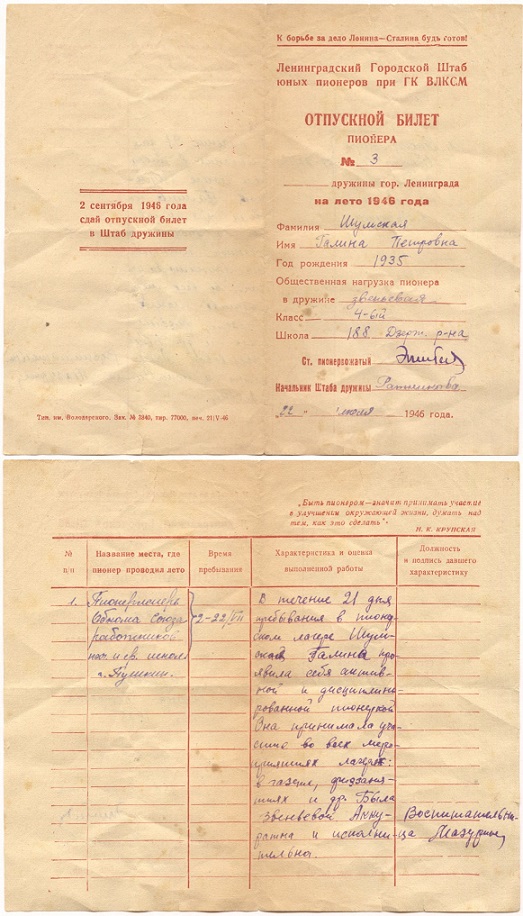 Анатолич писал(а) Чт, 28 июн 2007 20:48:10: Отпускной билет пионера.