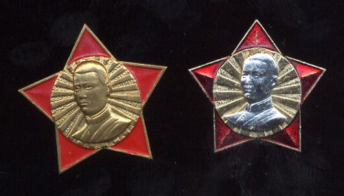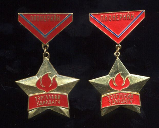 Действительно, октябрятские знаки с надписью "Баатарчууд" были впоследствии заменены показанными ниже (цельным бронзовым и знаком с накладным серебристым портретом шли в комплекте с круглыми знаками, как показано мной на 1-й стр.)анахорет писал(а) :знак - с Сухэ-Батором - "октябрятский" последнего поколения, сменивший "Баатарчууд" - В книжке о монгольских пионерах начала 80-х младшие детишки с такими знаками на фото.
