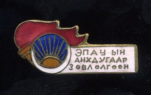 Монгольский октябрятский знак с изображением маршала Чойболсана. Размер 27 х 27 мм.nasa_astronaut писал(а) :И, тем не менне, до 1962 года портрет маршала Чойболсана спокойно присутствовал на многих монгольских знаках. А вот после 1962 года - уже все.