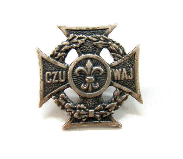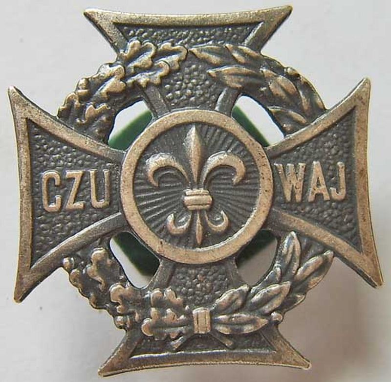 Statut ZHP, ROZDZIAŁ 3. Hymn, odznaki, symbole, mundury organizacyjne, § 10 писал(а) :dla pozostałych członków zwyczajnych ZHP, którzy złożyli Przyrzeczenie Harcerskie – tradycyjny Krzyż Harcerski, wzorowany na orderze Virtuti Militari, z lilijką w środku i wieńcem z liści dębowych i laurowych, wplecionym w ramiona, oraz napisem „CZUWAJ”.