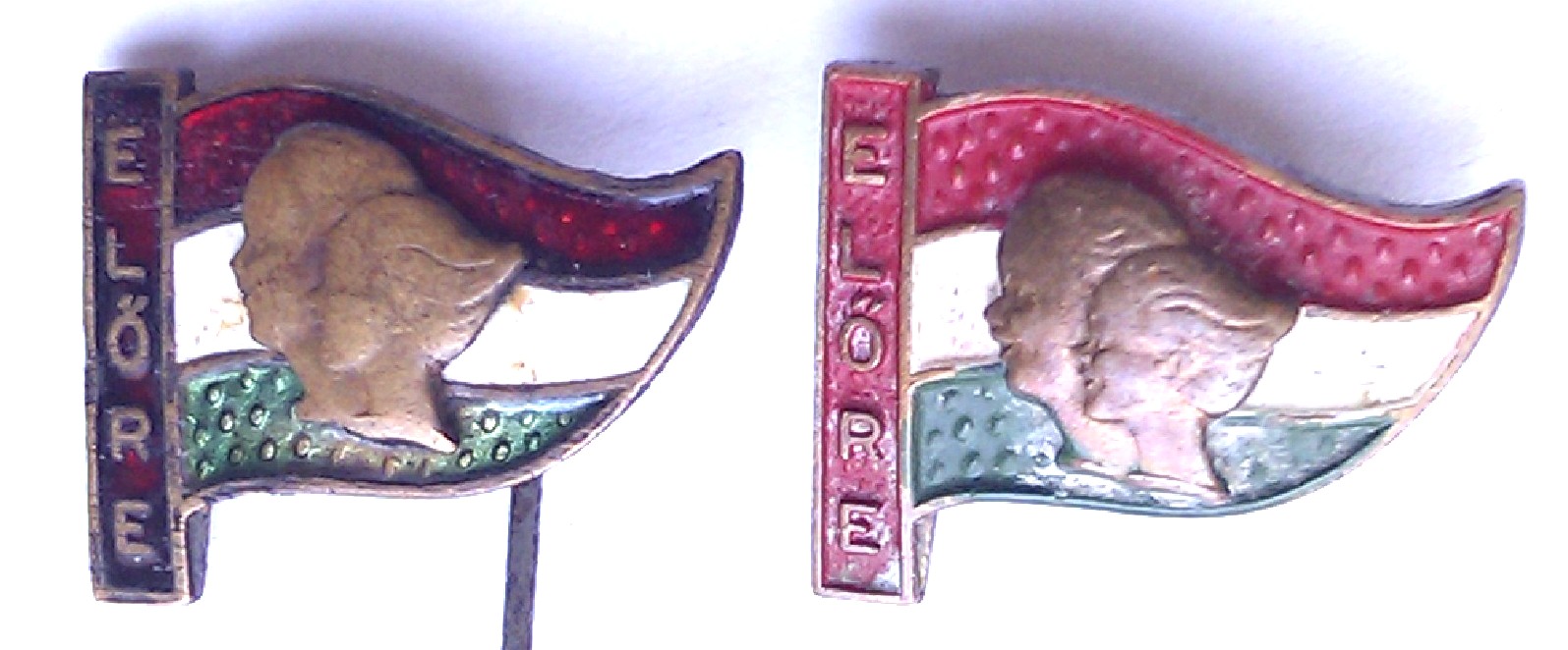 Членский знак до событий 1956 года. Обращает на себя внимание сложность, даже усложненность крепления. Как же его носили? Выскажу версию, что "усами" знак крепился - но не на рубашку: нерационально, порвет ткань, застежка практичнее; здесь крепление на что-то более стационарное - скорее на берет/пилотку? А вот относительно второй части, под "усами" - не использовался ли знак и как зажим для пионерского галстука? Буду признателен если коллеги поучаствуют в обсуждении, и особо - если кто имеет точные сведения.