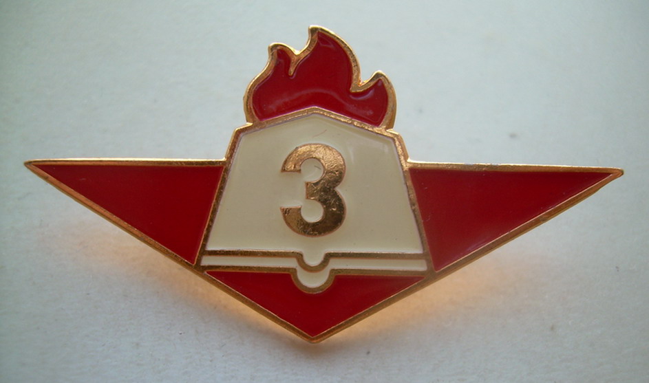 В чешском варианте данный знак именуется: "oznaceni kvalifikace pionyrskych pracovniku", мой вариант перевода: квалификация пионерских работников. Таковых три ступени. Самый "прикольный" - четвертый: с книжкой без номера, называется - инструктор. Кстати, готов приобрести такой, если кто предложит :)