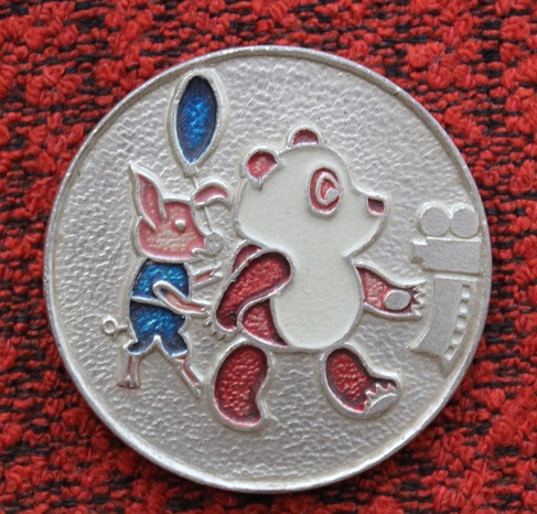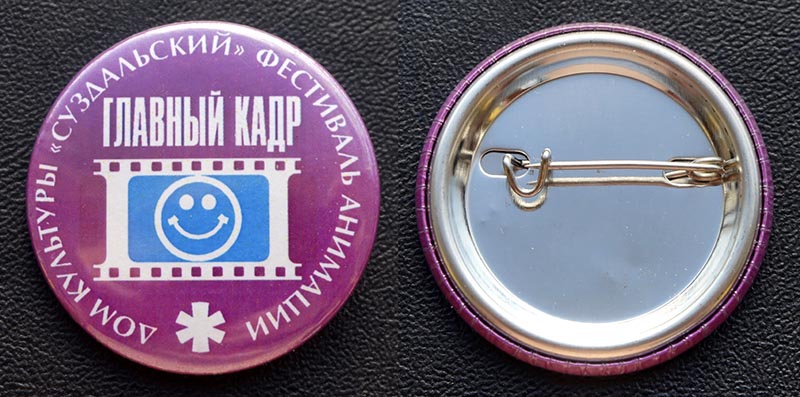 Значок с перфорацией киноплёнки по краям и с изображением КИНОкамеры.