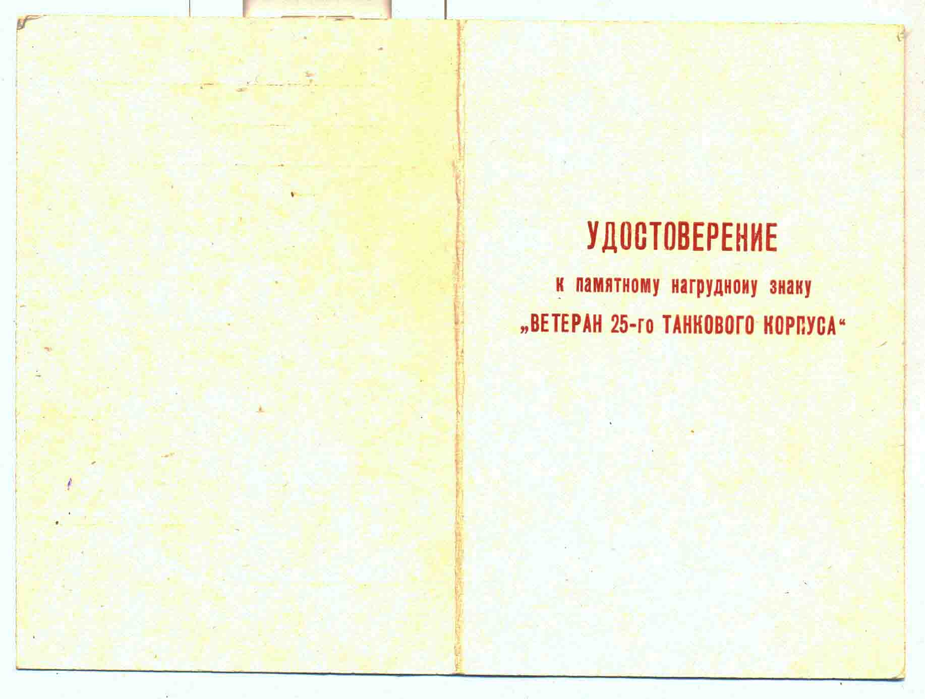 Удостоверение к знаку 5 гв. Танковый Корпус