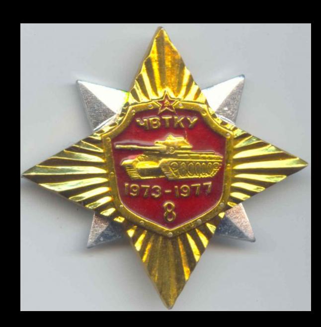 И знак выпускника - Ташкентское Высшеее Танковое Командное Училище. К сожалению, знак" потрёпан", белая эмаль основного фона слезла... отломано крепление...купец писал(а) :В ожидании новых сообщений...