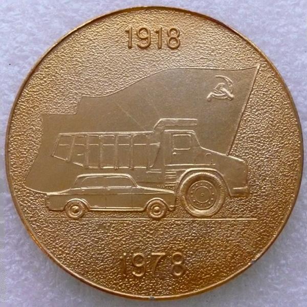 МАЗ (на медали). 60 ЛЕТ СРЕДНЕ-ВОЛЖСКОМУ ТРАНСПОРТНОМУ УПРАВЛЕНИЮ. 1918 • 1978 (настольная медаль)